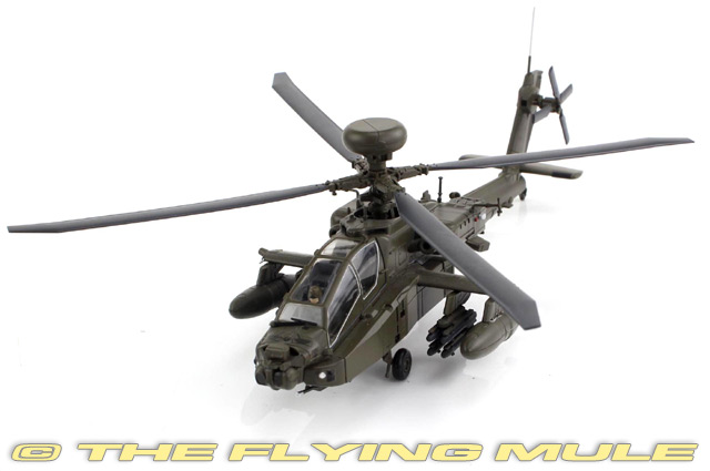 In 2022, the British Army began operating the AH-64E Apache Guardian, an upgraded version of the Apache AH-64. The AH-64E offers enhanced capabilities over the earlier models, including improved avionics, longer-range radar, and advanced targeting systems, making it highly effective in both combat and reconnaissance roles. The British Army's transition to the AH-64E marked a significant step in modernizing its attack helicopter fleet. The aircraft is capable of engaging a variety of ground targets, providing close air support, and performing tactical reconnaissance. Its increased operational flexibility supports the Army's modern defense and strategic capabilities. Designed to meet a US Army requirement for an advanced attack helicopter, the AH-64 was first flown on September 30th, 1975. Called "The Apache," this formidable helicopter replaced the AH-1 Cobra as the principal attack helicopter for the US Army. At the time of its introduction, the Apache was revolutionary, with an innovative helmet mounted display and improved crash survivability. It is heavily armored and has been called a "Flying Tank," not only because of its defenses but also because of its ability to inspire fear on the battlefield. The Apache has become a symbol of Army airpower, serving in both Gulf Wars and in Afghanistan. © Copyright 2003-2025 The Flying Mule, Inc. The Hobby Master "1:72 Air Power Series" range presents detailed, ready-made diecast models of military aircraft. Hobby Master "1:72 Air Power Series" diecast airplanes feature: - Diecast metal construction with some plastic components.