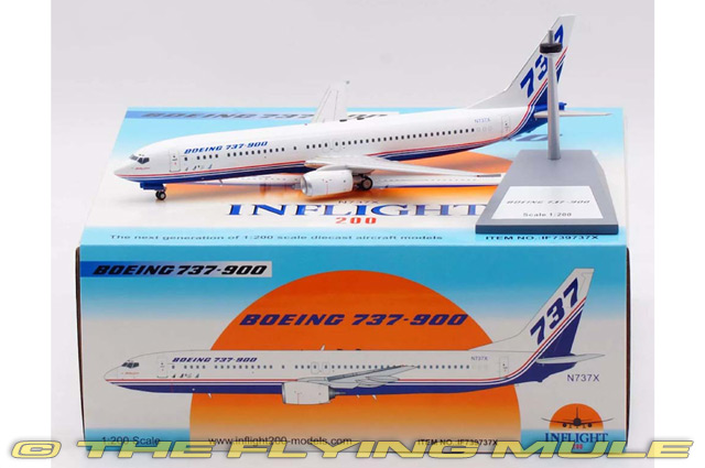 | Boeing 737-900 | | 8.25" | | 7" | Designed as a smaller, short-ranged alternative to the Boeing 707 and 727, the 737 was first flown on April 9th, 1967. Over its long operational carreer, the 737 has spawned numerous variants ranging in capacity from less than 100 to more than 200 seats. In fact, the 737 series is the best-selling jetliner in aviation history with more than 6,500 aircraft manufactured to date and more than 4,500 still in service with over 500 airlines around the world. Incredibly, there is a 737 taking off or landing somewhere in the world, on average, every five seconds. © Copyright 2003-2025 The Flying Mule, Inc. The Inflight 200 range presents detailed, ready-made diecast models of civilian and military transport aircraft. Inflight 200 diecast airplanes feature: - Diecast metal construction with some plastic components.