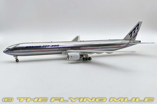 | Boeing 777-300 | | 14.5" | | 12" | Designed as a wide-bodied, twin-engined airliner to compete with the Airbus A330/A340 and the McDonnell Douglas MD-11, the 777 was first flown on June 12th, 1994. A pair of the world's largest diameter turbofan engines power the aircraft which currently holds the record for world's largest twin-engined airliner. The 777 was Boeing's first fly-by-wire airliner, featuring complete glass cockpit displays and flight envelope protection. Standard varients have a range of 4,200 nautical miles while Extended Range (ER) variants can fly for 6,600 nautical miles and the Longer Range (LR) variant is the world's longest range airliner capable of flying 7,800 nautical miles. © Copyright 2003-2025 The Flying Mule, Inc. The Inflight 200 range presents detailed, ready-made diecast models of civilian and military transport aircraft. Inflight 200 diecast airplanes feature: - Diecast metal construction with some plastic components.
