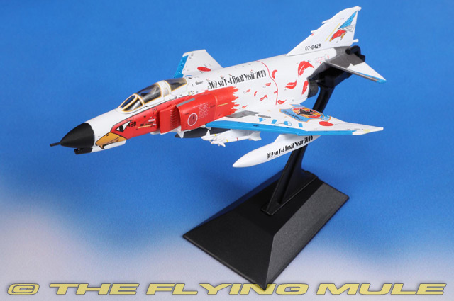 McDonnell Douglas F-4EJ Kai 07-8428 is assigned to the JASDF 302 Hikotai (Tactical Fighter Squadron). The squadron is scheduled to move to Misawa AB in 2019 and start receiving the new F-35A Lightning II. To mark the end of the 302 Hikotai using the F-4, 07-8428 was given a special white paint scheme decorated with a large red eagle along the fuselage. The squadron logo is a tri-color white tailed eagle with the shape of the body representing the "3" white tail "0" and blue wing "2". Designed as a fleet defense fighter for the US Navy, the F-4 Phantom was first flown on May 27, 1958. This twin-engine, long-range all-weather fighter/bomber proved highly adaptable and served in the Marine Corps and the US Air Force as well as in the Navy. During the Vietnam War, it was the principal air superiority fighter for the Navy and the Air Force and was also used for reconnaissance and ground attack. The Phantom continued to serve well into the 1970s and 1980s and even flew missions during the first Gulf War. Finally phased out by the F-14, F-16 and F/A-18, the Phantom was retired in 1996. © Copyright 2003-2025 The Flying Mule, Inc. The JC Wings "1:144 Military" range presents detailed, ready-made diecast models of military aircraft in 1:144 scale. JC Wings 1:144 Military diecast airplanes feature: - Diecast metal construction with some plastic components.