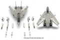 JC's 1:72 scale F-14 offers collectors many wonderful features at an economical price. In designing this model, close attention has been paid to small details such as the opening cockpit with correct hydraulic actuator arm, air data sensors and pitot tubes. Adjustable parts include deployable speed brakes, independently movable stabilators, twins with movable rudders and swing-wings with the full range of motion. As a bonus, this model is also the first to feature a deployable arrestor hook. Variants in this series include an F-14A with P&W TF30 exhaust nozzles, and B and D variants with upgraded exhaust nozzles.