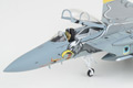 JC's 1:72 scale F-15s feature an impressive amount of pad-printed markings including some elaborate paint schemes and numerous warning placards found adorning the entire airframe. They are highly detailed with a delicate thin cambered wing, simulated stainless-steel heat shielding surrounding the engine exhausts, movable razor thin all metal elevators and rudders. The underside of the aircraft features metal landing gear with a full complement of beautifully pad printed ordnance. Showing remarkable attention to detail, actuators extend and retract with the hinged canopy and speed brake and compressor fans will even spin if air is blown into the engine intakes!