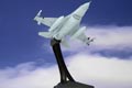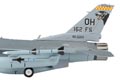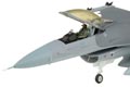 JC's 1:72 scale F-16 is constructed of solid diecast metal. Very few plastic parts are used, yet the finer points—detailed landing gear, engine exhaust, cockpit interior and panel lines and rivet details—are reminiscent of those usually only found on plastic models. Even subtle details have been included, such as radar warning antenna "beer cans," static discharge wicks and angle of attack vanes. This model, available as either a single-seat C variant or a two-seat D variant, is highly configurable, with movable stabilators, positionable rudder, a hinged canopy with extending and retracting actuator and a variety of different weapons configurations.