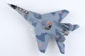JC's 1:72 scale MiG-29 is constructed almost entirely of diecast metal, with careful attention paid to even the smallest of details. This is a model with many movable parts, including a hinged canopy, deployable speed breaks and movable rudders with correctly replicated actuator mechanism. The landing gear is highly detailed, with rivets inside the gear doors, separately applied transparent landing lights, structural detail inside the wheel wells and a detailed splash fender. The auxiliary air inlet's louvers seamlessly blend with the upper fuselage. Fully armed with a 30mm cannon and three different missile types, this model is available as the single-seat A variant or two-seat B variant.