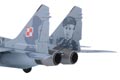 In May 2015, the Polish Air Force repainted this MiG-29UB with a paint scheme commemorating Polish Fighter Ace, Stanislaw Skalski. The scheme featured a large emblem on top of the aircraft honoring the 22nd Tactical Aviation Base at Malbork, while the insides of the vertical tail surfaces included portrait images of Skalski himself. Stanislaw Skalski was one of the most famous Polish pilots fighting during the Second World War. Officially he shot down 18 and 11/12 enemy fighters, with 2 probable kills. Skalski was serving in the Torun-based 142nd Fighter Escadrille of the 4th Aviation Regiment, and then in the No.306 (City of Torun) Polish Fighter Squadron, traditions of which are maintained and pursued by the Malbork 22nd Air Base. He also commanded the famous Polish Fighting Team unit, also known as the "Skalski's Circus".