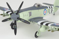 JC's 1:72 scale Hawker Sea Fury is constructed almost entirely of solid diecast metal. The models in this series feature distinct-yet-subtle panel lines and rivets, an uncommon feature in diecast metal (usually only seen on plastic models). The near solid fuselage has an all-metal empennage, a bubble canopy for easy viewing of the pilot figure and a sleek, five-bladed propeller and hub that blends seamlessly with the engine cowling. The solid metal wing has 20mm cannon ports on the leading edge, sturdy fixed landing gear and a variety of wing mounted drop tanks and ordnance loads. Releases in this series include the single-seat fighter-bomber and two-seat trainer variants.
