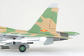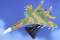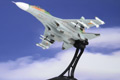 JC's 1:72 scale Su-30 is a large, heavy model made primarily of diecast metal, with plastic used only in those areas requiring the finest detail. Subtle panel lines and rivet details cover the surface of the model, and are even present on the underside. Moving parts include an opening hinged canopy, deployable speed brake with metal actuator support arm and movable rudders. The highly-detailed landing gear has separately-applied transparent landing lights, and structural and hydraulic line details are visible inside the wheel wells. Other fine details can be seen inside the engine intake, on the simulated heat shielding and on the arrestor hook.