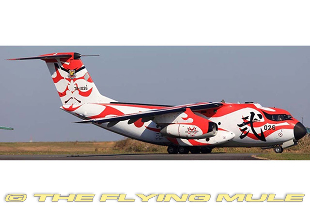 | Kawasaki C-1 | | 2.75" | | 3" | Designed to meet a JASDF requirement for a C-46 Commando replacement, the C-1 was first flown on November 12th, 1970. Typical of modern military transport designs, the C-1 has a high-wing, high t-tail configuration to Maximise cabin volume and allow for easy loading through a rear ramp. The C-1 requires a crew of 5 and is capable of lifting 26,000lbs of cargo or 60 fully-equipped troops or 45 paratroops. Political limitations in the 1960s restricted the design to a range of just 700nm, severly limiting the operational capabilities of the C-1. © Copyright 2003-2025 The Flying Mule, Inc. The JC Wings "1:400" range presents higly-detailed, ready-made diecast models of civilian aircraft in 1:400 scale. JC Wings diecast airplanes feature: - Diecast metal construction, including wings and tail surfaces.