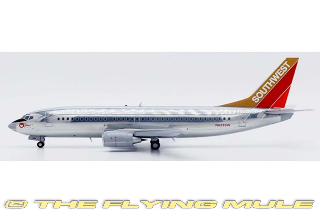 Boeing 737-3H4, serial number 27704, entered service with Southwest Airlines as N629SW. The aircraft became part of Southwest's expanding fleet during the 1990s and operated short and medium haul routes across the airline's growing domestic network. Configured with the airline's single class cabin, the 737-300 provided high frequency service and quick turnaround times. Powered by CFM56-3 engines, the aircraft offered improved performance and efficiency compared with earlier 737 variants. N629SW played a key role in Southwest Airlines' growth before the airline later replaced the 737-300 fleet with newer 737 Next Generation aircraft. Designed as a smaller, short-ranged alternative to the Boeing 707 and 727, the 737 was first flown on April 9th, 1967. Over its long operational carreer, the 737 has spawned numerous variants ranging in capacity from less than 100 to more than 200 seats. In fact, the 737 series is the best-selling jetliner in aviation history with more than 6,500 aircraft manufactured to date and more than 4,500 still in service with over 500 airlines around the world. Incredibly, there is a 737 taking off or landing somewhere in the world, on average, every five seconds. © Copyright 2003-2026 The Flying Mule, Inc. The JC Wings "1:200" range presents higly-detailed, ready-made diecast models of civilian aircraft in 1:200 scale. JC Wings diecast airplanes feature: - Diecast metal construction, including wings and tail surfaces.