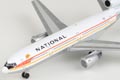 The DC-10 is a wide-body Trijet airliner that features two engines mounted on underwing pylons and a third engine at the base of the vertical stabilizer. The DC-10 has range from 3800 to 6220 miles for medium to long-haul flights, capable of carrying a maximum of 380 passengers. National Airlines was a US airline based out of Miami that operated from 1934 to 1980. Dubbed the "Sun King" for their eye-catching livery, National's DC-10s flew their trans-continental routes and was part of the airline's 1972 publicity campaign promoting National's flight attendants with the slogan "I'm Phyllis Fly me."