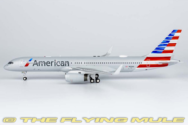 | Boeing 757-200 | | 9.25" | | 7.5" | Designed as a narrow-bodied, twin-engined airliner to replace the 727, the 757 was first flown on February 19th, 1982. Developed in tandem with the wide-bodied 767 twinjet, both aircraft share a common digital cockpit layout and are operated by a two man flight crew. Thanks to a proven reliability track-record, the 757 is approved for extended twin engine operations (ETOPS) making it a popular choice for airlines flying transatlantic routes. A total of 1050 aircraft were built before production ceased in 2004, however many airframes have since been retrofitted with drag-reducing blended winglets to help improve fuel economy. © Copyright 2003-2025 The Flying Mule, Inc. The NG "1:200" range presents higly-detailed, ready-made diecast models of civilian aircraft in 1:200 scale. NG 1:200 diecast airplanes feature: - Diecast metal construction, including wings and tail surfaces.