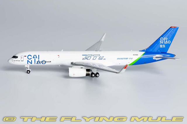 | Boeing 757-200 | | 4.75" | | 3.75" | Designed as a narrow-bodied, twin-engined airliner to replace the 727, the 757 was first flown on February 19th, 1982. Developed in tandem with the wide-bodied 767 twinjet, both aircraft share a common digital cockpit layout and are operated by a two man flight crew. Thanks to a proven reliability track-record, the 757 is approved for extended twin engine operations (ETOPS) making it a popular choice for airlines flying transatlantic routes. A total of 1050 aircraft were built before production ceased in 2004, however many airframes have since been retrofitted with drag-reducing blended winglets to help improve fuel economy. © Copyright 2003-2025 The Flying Mule, Inc. The NG "1:400" range presents higly-detailed, ready-made diecast models of civilian aircraft in 1:400 scale. NG 1:400 diecast airplanes feature: - Diecast metal construction, including wings and tail surfaces.