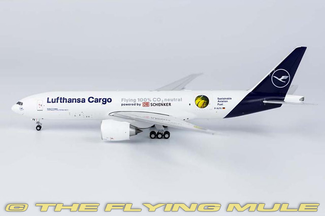 | Boeing 777-200F | | 6.25" | | 6" | Designed as a wide-bodied, twin-engined airliner to compete with the Airbus A330/A340 and the McDonnell Douglas MD-11, the 777 was first flown on June 12th, 1994. A pair of the world's largest diameter turbofan engines power the aircraft which currently holds the record for world's largest twin-engined airliner. The 777 was Boeing's first fly-by-wire airliner, featuring complete glass cockpit displays and flight envelope protection. Standard varients have a range of 4,200 nautical miles while Extended Range (ER) variants can fly for 6,600 nautical miles and the Longer Range (LR) variant is the world's longest range airliner capable of flying 7,800 nautical miles. © Copyright 2003-2025 The Flying Mule, Inc. The NG "1:400" range presents higly-detailed, ready-made diecast models of civilian aircraft in 1:400 scale. NG 1:400 diecast airplanes feature: - Diecast metal construction, including wings and tail surfaces.