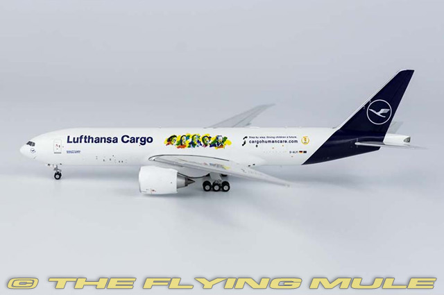 | Boeing 777-200F | | 6.25" | | 6" | Designed as a wide-bodied, twin-engined airliner to compete with the Airbus A330/A340 and the McDonnell Douglas MD-11, the 777 was first flown on June 12th, 1994. A pair of the world's largest diameter turbofan engines power the aircraft which currently holds the record for world's largest twin-engined airliner. The 777 was Boeing's first fly-by-wire airliner, featuring complete glass cockpit displays and flight envelope protection. Standard varients have a range of 4,200 nautical miles while Extended Range (ER) variants can fly for 6,600 nautical miles and the Longer Range (LR) variant is the world's longest range airliner capable of flying 7,800 nautical miles. © Copyright 2003-2025 The Flying Mule, Inc. The NG "1:400" range presents higly-detailed, ready-made diecast models of civilian aircraft in 1:400 scale. NG 1:400 diecast airplanes feature: - Diecast metal construction, including wings and tail surfaces.