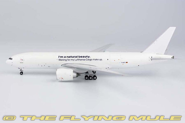 | Boeing 777-200F | | 6.25" | | 6" | Designed as a wide-bodied, twin-engined airliner to compete with the Airbus A330/A340 and the McDonnell Douglas MD-11, the 777 was first flown on June 12th, 1994. A pair of the world's largest diameter turbofan engines power the aircraft which currently holds the record for world's largest twin-engined airliner. The 777 was Boeing's first fly-by-wire airliner, featuring complete glass cockpit displays and flight envelope protection. Standard varients have a range of 4,200 nautical miles while Extended Range (ER) variants can fly for 6,600 nautical miles and the Longer Range (LR) variant is the world's longest range airliner capable of flying 7,800 nautical miles. © Copyright 2003-2025 The Flying Mule, Inc. The NG "1:400" range presents higly-detailed, ready-made diecast models of civilian aircraft in 1:400 scale. NG 1:400 diecast airplanes feature: - Diecast metal construction, including wings and tail surfaces.