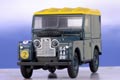 This hardy little Land Rover appears as used by the RAF and with hard back, decorated in the Service's signature blue, even down to the wheels and masked with very bright yellow roof. Military markings include the number plate 64 AA 28 which appears on the offside rear and the nearside front wing. The front offside upper wing features the RAF roundel in its usual red, white and blue, together with the number 2 in black/yellow below. Note too, that this Land Rover features the radiator grille of the 80" version.