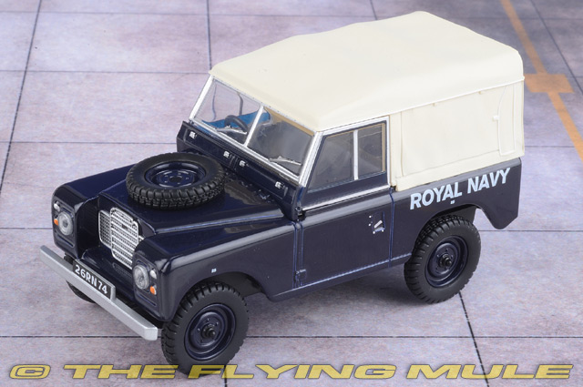 This popular Land Rover appears in the superb dark blue body colour of the Royal Navy with contrasting white lettering and a light beige canvas back. The wheels are painted the same dark blue as the body, including the spare, sitting on the bonnet. Registered 26 RN 74, further external trim is finished in silver. The interior is moulded in dark blue. The Series III Land Rover was produced between 1971 and 1985 and was the most popular of the Series vehicles, with an incredible 440,000 being produced during that time. Variants included a 2-door version - as this Oxford model - a 4-door off-roader or 2-door pickup. The updated spec had improved features such as a plastic grille and the headlight now appeared on the wings. The 4-speed manual gearbox had a selectable 4-wheel drive option and a choice of either petrol or diesel fuel was available.