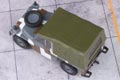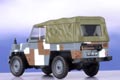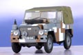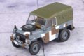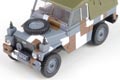 Land Rover 1/2 ton Lightweight with a replica painted in the urban camouflage scheme adopted by the US Berlin Brigade during its posting to West Berlin during the Cold War period, where it was stationed along with the British and French forces right up until the fall of the Soviet Union. The brown, blue-grey and white rectangular pattern of the body is topped with a dark grey canvas roof, with the wheels repeating the main blue-grey body colour. Added extras on this model include aerials to both the front mudguards and a grey-blue bridge plate attached to the radiator, which in this case is printed with the number 2.