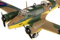 This 1:72 scale model is based on a plane that operated out of RAF Hullavington in Wiltshire during WWII, where No. 9 Flying Training School arrived on 3rd September 1939 with their Avro Anson Trainers. They were stationed there until early 1942 when the Empire Central Flying School came on the scene with a much wider range of aircraft for their trainees. The twin-engined Avro Anson was British made, developed from the Avro 652 airliner, and after various other wartime roles, was found most suitable as a three to four seater aircrew trainer. In a dark green and dark earth camouflage scheme with yellow underside, being a trainer, our model comes without the machine gun in the turret. The cockpit interior is green with a black headrest and other fine details include wing lights enhanced in dark red on the left wing and dark green on the right; matt black engines with silver engine hubs; black DF loop; and two oil coolers on the underside behind the engines.