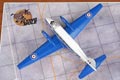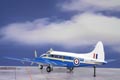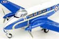 For its third release in the series, we see the Devon C1 with identification number VP975, as used by the Royal Aircraft Establishment based on the south coast of England. Resplendent with its white upper fuselage, with dark blue to the wings, upper tail surfaces and side fuselage, the underside is painted in silver. The RAF roundels are prevalent, too, indicating its military status. An interesting touch sees a white and gold stripe running from the tail, along the sides of the aircraft and round the nose cone. The Royal Aircraft Establishment lettering is printed above the passenger windows on both sides. The interior cockpit and instrument panels are finished in grey whilst the cabin area and passenger seating - designed to take between 8 and 11 passengers - are given a beige colour scheme. The Royal Aircraft Establishment was subsequently named the Royal Aerospace Establishment before further mergers saw the name disappearing altogether, becoming part of the Defence Research Agency.