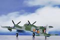 This military version of the DH Hornet is a replica of the fighter aircraft based in Hong Kong in 1953, where it was deployed as part of 80 Sqn's duty to defend Hong Kong from perceived Communist threats during the Chinese Civil War. The de Havilland Hornet and the squadron remained there until May 1955. No 80 Squadron was formed in 1917, firstly as part of the Royal Flying Corps and then the RAF. It served in both World Wars, finally disbanding in 1969. Our replica comes in RAF grey and green camouflage with grey/blue underside and dark blue propeller spinners. The squadron roundel is interesting, being a red rectangle with a yellow diamond shape encasing the usual RAF insignia and features on both sides of the fuselage. The normal RAF roundel also appears on the upper and lower wings. The model also carries the added detail of two underwing bombs and both retracted and extended undercarriage options.