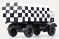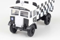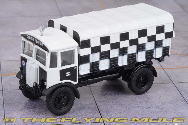 This 1:76 scale AEC Matador model, features in a simple black and white chequered colour scheme, including a white roof and black wheels, as used by the RAF Desert Rescue Team in North Africa. The RAF roundel is printed on one side of the flat front and RAF Idris is printed on the side doors. Registered 77 AE 11, its purpose is also highlighted by the Desert Rescue wording above the windscreen. On this model too, note the addition of a spotlight on the front of the roof above the signage. Additional external masking is finished in silver while the interior is moulded black with black steering wheel.
