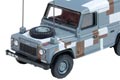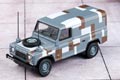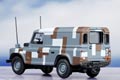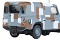 The blue grey/brown and white military colour scheme is an unusual and cleverly applied mix for our latest Land Rover Defender registered 48 KF 04, which also carries the Union Flag on the nearside edge of the bonnet.The blue grey colour is reflected in the wheels, whilst the chassis, bumpers, mudguards, radiator grille and interior of the vehicle are all black.