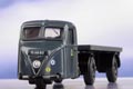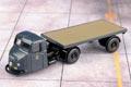 The Scammell Scarab was used widely for internal transport within the military and here we see it once more in RAF livery. The body and trailer sides are decorated in dark blue and the model comes with a black chassis, black interior and black mudguards and wheel hubs. With military number plate 19 AN 80, other military markings include the RAF roundel on the front with a crest on the cab doors. The Scammell badge sits proudly at the top of the familiar shaped Scammell radiator with integral single light and incorporating the horse's head, signifying the Scarab's alter ego - the mechanical horse. To round off the vehicle, the flatbed trailer floor has been painted to create a light brown planked effect.