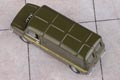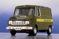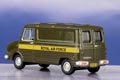 Our ubiquitous Sherpa Van is now in the hands of the RAF and appears here in an unusual RAF colour scheme of dark green with a block of yellow masking along both sides. The interior is moulded black. The Royal Air Force lettering running along both sides of the van is printed in black and the military registration plate reads 88 KG 61. The Sherpa 200 series number is minutely displayed in red, black and silver on the nearside rear door, with other exterior trim finished in silver.