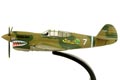 The Curtiss P-40 Warhawk is an American single-engined, single-seat all-metal fighter and ground attack aircraft that first flew in 1938. It was produced between 1939 and 1944, during which time over 13,700 were produced. The P40-E was an upgrade on previous models and had maximum speed of 360 mph, range of 650 miles and was armed with 6 x .50 M2 Browning machine guns with 235 rounds per gun in the wings and 250 to 1000 lb bombs to a total of 2,000 lbs on three points - one under the fuselage and two underwing.