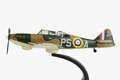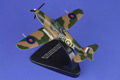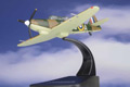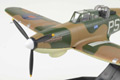 This 1:72 scale replica Boulton Paul Defiant is as flown by Sqn Ldr Phil Hunter and his gunner Sgt F King during their days at RAF Hornchurch. The serial number N1535 and fuselage code PS-A are faithfully reproduced on the sides of the aircraft which is decorated in the dark brown earth and dark green camouflage scheme with the RAF roundel on both the upper wings and the fuselage. The turret frame, gun barrels, instrument panel and tyres are all finished in black, while the cockpit is moulded in green. The underside of the aircraft is painted in a matt sky blue, against which the rusty brown exhaust pipes and wing lights are clearly visible. The single propeller is finished in black with yellow tips to the three blades and a matt white spinner.