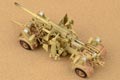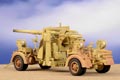The 88 mm (commonly called the eighty-eight) was a German 88 mm anti-aircraft and anti-tank artillery gun from World War II. It was widely used by Germany throughout the war, and was one of the most recognized German weapons of that conflict. Development of the original model led to a wide variety of guns. Flak is a contraction of German Flugzeugabwehrkanone meaning "aircraft-defense cannon", the original purpose of the eighty-eight. In English, "flak" became a generic term for ground anti-aircraft fire. The versatile carriage allowed the eighty-eight to be fired in a limited anti-tank mode when still on its wheels; it could be completely emplaced in only two-and-a-half minutes. The later model Flak 37 which included updated instrumentation to allow the gun layers to follow directions from the single director more easily. Some sources mistakenly cite that the Flak 37 was not equipped for anti-armor purposes. The fact is all 8.8 cm Flak guns were capable of the dual role. The 88 mm gun was developed as early as 1928 by Krupp of Essen, and entered production after Hitler's rise to power in 1933. The '88' proved itself to be an excellent anti-aircraft gun and a feared tank killer relying on power and range rather than concealment. It could knock out any Allied tank at distances well over 1000 meters. The series of anti-aircraft guns officially called the 8,8 was mounted on a pivoted cruciform carriage, which was carried by two single axle trailers, pulled by another vehicle and could be quickly dismounted and stationed in the field or fired while trailered. © Copyright 2003-2025 The Flying Mule, Inc. The Precision Model Art diecast model range presents detailed, ready made diecast models of military vehicles. Precision Model Art diecast vehicles feature: - Diecast metal and plastic construction.