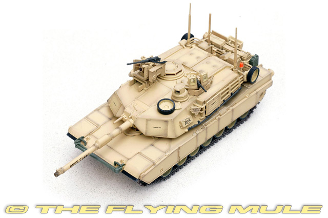 The M1A1 SEPv2 Abrams is a further refinement of the upgraded M1A1 SEP Abrams. The System Enhancement Package (SEP) improves combat effectiveness and survivability with digital fire control improvements, improved thermal sights, better crew displays, and enhanced situational awareness over earlier M1A1 variants. It retained the 120 mm gun and core armor but focused on electronics, reliability, and crew effectiveness. SEPv2 introduced a second generation FLIR for gunner and commander, improved networking and power management, upgraded armor packages, and greater reliability based on combat experience. Overall, SEP marked the digital leap, while SEP V2 delivered sharper sensors, better survivability, and smoother integration across modern battlefields. General Dynamics delivered the first M1 Abrams to the U.S. Army in 1980. The Abrams is a full tracked, low profile land combat system possessing a high degree of armor protection, lethal firepower, maneuverability and agility. It is built primarily from sturdy rolled homogeneous armor steel plates, sandwiched around thicker protective material. Its four man crew is aided by an array of sensors that constantly monitor the tank's tilt, the turret's motion and any gusts of wind; a computer adjusts the gun accordingly to keep it aimed at its target. With this system, the M1 can take out other tanks while on the move. © Copyright 2003-2026 The Flying Mule, Inc. The Panzerkampf "1:72 Armor" range presents affordable, ready made diecast models of military vehicles in 1:72 scale. Panzerkampf diecast vehicles feature: - Diecast metal and plastic construction.