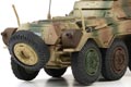 The 1.Panzerdivision was raised in October 1935 in Weimar. It saw its first combat in Spetember 1939 in Poland. After the fall of Poland it was transported to the western border and invaded then Luxemburg and France in May 1940. In September 1940 the Division was transported to East-Prussia and was part of the invasion of russia where it headed direction Moscow in 1941. Early 1942 it was transferred from Heeresgruppe-Nord to Heeresgruppe-Mitte and fought at Welish and Rshew until it was transported to France by end of December 1942 where it satyend until May 1943 when it was transported back in combat in Greece and lateron in October transferred to the Ukraine. It stayed at the Eastern Front until the end of the war and fought at Shitomir, Brody, Hungary and pulled back to Austria where it surrendered to US troops in May 1945. Designed as a heavily-armored reconnaissance vehicle with the mission of observing enemy forces, the Schwerer PanzerspƤhwagen first entered service in the mid 1930s. Originally based on a 6x4 truck design, these large but fast armored vehicles evolved to include eight-wheel designs. Though not meant to engage enemy forces, PanzerspƤhwagens could withstand small arms fire and could return fire with a 2 cm KwK 30 L/55 autocannon. The better-armed Sd Kfz. 234 Puma had a heavier gun that was capable of destroying armored cars and light tanks. These vehicles were operated throughout the war, though the extreme conditions in the USSR and North Africa limited their usefulness. © Copyright 2003-2025 The Flying Mule, Inc. The Panzerstahl display model range presents ready made plastic models of military vehicles. Panzerstahl display model vehicles feature: - Molded plastic construction.
