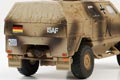 The 147 produced Dingo 1 are mainly used in missions outside Germany just as KFOR and ISAF to give the crews the best possible protection. Especially in Afghanistan it proved several times to be reliable on attacks by carbombs and mines and is still in use there. The camouflage color is based on a sandyellow with brown tones to adapt better to the hot climate zones.