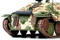 Based on a pre-WWII Panzer tank chassis, the "Hetzer" (Troublemaker) was one of the most successful German tank systems of the war. Compact, highly mobile and equipped with a powerful 75mm PaK 39 artillery gun, the Hetzer was also armoured with a thick, slope-sided hull designed to deflect incoming missiles. The Hetzer became the main German tank destroyer towards the end of WWII. Designed as a light tank destroyer based on the Panzer 38(t) chassis, the Jagdpanzer 38(t) Hetzer (or "Baiter") entered production in April 1944. By using a proven chassis, the design was more cost-effective than the Jagdpanther and Jagdtiger designs. In contrast to the earlier Marder and Nashorn tank destroyers, the Hetzer was heavily armored, featuring a 60mm front armor plate, sloped at a 60 degree angle. The orginal Jagdpanzer 38(t) carried a 75mm cannon but later variants used a 150mm howitzer, while others were outfitted with a flamethrower and redesignated Flammpanzer 38. © Copyright 2003-2025 The Flying Mule, Inc. The Panzerstahl display model range presents ready made plastic models of military vehicles. Panzerstahl display model vehicles feature: - Molded plastic construction.