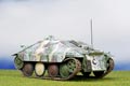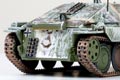Based on a pre-WWII Panzer tank chassis, the "Hetzer" (Troublemaker) was one of the most successful German tank systems of the war. Compact, highly mobile and equipped with a powerful 75mm PaK 39 artillery gun, the Hetzer was also armoured with a thick, slope-sided hull designed to deflect incoming missiles. The Hetzer became the main German tank destroyer towards the end of WWII. Designed as a light tank destroyer based on the Panzer 38(t) chassis, the Jagdpanzer 38(t) Hetzer (or "Baiter") entered production in April 1944. By using a proven chassis, the design was more cost-effective than the Jagdpanther and Jagdtiger designs. In contrast to the earlier Marder and Nashorn tank destroyers, the Hetzer was heavily armored, featuring a 60mm front armor plate, sloped at a 60 degree angle. The orginal Jagdpanzer 38(t) carried a 75mm cannon but later variants used a 150mm howitzer, while others were outfitted with a flamethrower and redesignated Flammpanzer 38. © Copyright 2003-2025 The Flying Mule, Inc. The Panzerstahl display model range presents ready made plastic models of military vehicles. Panzerstahl display model vehicles feature: - Molded plastic construction.