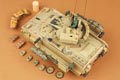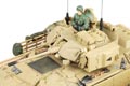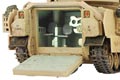 Forces of Valor's 1:32 scale Bradley is intelligently designed; the top portion of the hull and turret are constructed in diecast metal, with plastic components used in those areas requiring maximum detail. Moving parts include a 360 degree rotating turret, opening crew hatches, rolling rubber tracks and wheels with active suspension and a rear door that can be lowered to reveal interior details. A 25mm chain gun with articulating aerial gun sight pivots in unison with a 7.63 machine gun, and the turret-mounted TOW missile system has an articulating front seal and can be raised to firing position. A variety of battlefield equipment is included for enhanced display.