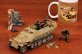 Forces of Valor's 1:32 scale Sd.Kfz.251 series includes the standard troop carrier half-track "Schutzenpanzerwagen" and the "Stummel" (stump), equipped with a 75mm gun. Each release features rolling rubber tracks with working suspension on each track wheel and a variety of battlefield accessories. The front wheels are steerable with details of the steering linkages visible below. The engine hatch opens to reveal a highly detailed Maybach 6 cylinder engine. The large, wide-open crew compartment provides a clear view of a fully rendered interior. The model's hull features opening rear doors and storage compartments and a rotating rear machine gun.