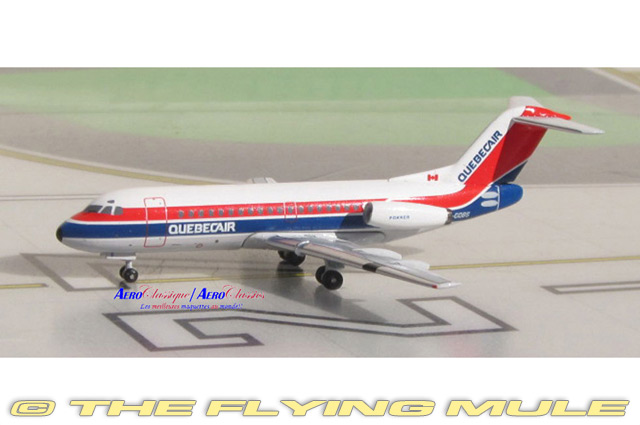 AeroClassics 1:400 Series ACQBA1114A Fokker F28 Fellowship Diecast Model Quebecair, C-GQBR | |