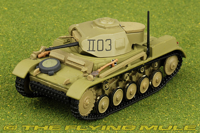 The Panzer II is the common name used for a family of German tanks used in World War II. The official German designation was Panzerkampfwagen II (PzKpfw II). Although the vehicle had originally been designed as a stopgap while larger, more advanced tanks were developed, it nonetheless went on to play an important role in the early years of World War II, during the Polish and French campaigns. The Panzer II was the most numerous tank in the German Panzer divisions beginning with the invasion of France. It was used in both North Africa against the Western Allies and on the Eastern Front against the Soviet Union. Designed to fill a gap in the production of the Panzer III and Panzer IV tanks, which were experiencing delays in development, the Panzer II or Panzerkampfwagen II was first tested in October of 1935. Larger than its predecessor, the Panzer I, the Panzer II was Germany's primary battle tank until the beginning of 1941 but was nevertheless fairly ineffective in combat. It was really better suited for use as a light reconnaissance tank, and is particularly important because of the role it played in the development of later more powerful Panzers. Panzer IIs were removed from the front lines in 1942. © Copyright 2003-2025 The Flying Mule, Inc. The Amercom "Combat Vehicles" range presents affordable, ready made diecast models of light military vehicles in 1:72 scale. These arrive in low-cost, discardable blister type packaging. Amercom "Combat Vehicles" diecast vehicles feature: - Diecast metal and plastic construction.