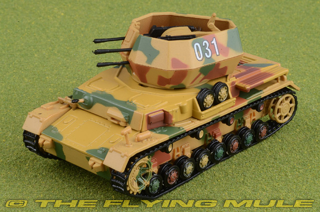 The Flakpanzer IV Wirbelwind is one of the most distinguishable German WW2 tanks. Built on older and sometimes battle damaged Panzer IV chassis, the Wirbelwind was an interim solution to defend against strong air assaults from allied aircraft. The Wirbelwind was armed with quadruple 20mm Flak 38 guns in an open turret designed with nine armored side panels.