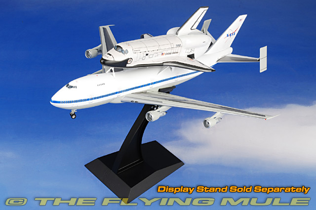 Please note: Unlike other models in the Aviation200 Series, the Space Shuttle model is made from a heavy cast resin with markings applied as decals and over-coated in a laquered finish. The 747 is diecast metal and pad-printed as normal.