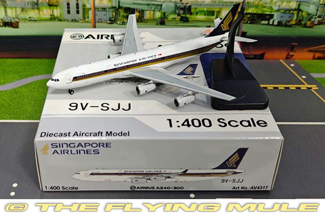 | Airbus A340-300 | | 6.25" | | 6" | Designed as a wide-bodied, long-haul passenger transport, the A340 was first flown on October 25th, 1991. © Copyright 2003-2026 The Flying Mule, Inc. The Aviation 400 range presents detailed, ready-made diecast models of civilian and military transport aircraft. Aviation 400 diecast airplanes feature: - Diecast metal construction with some plastic components.