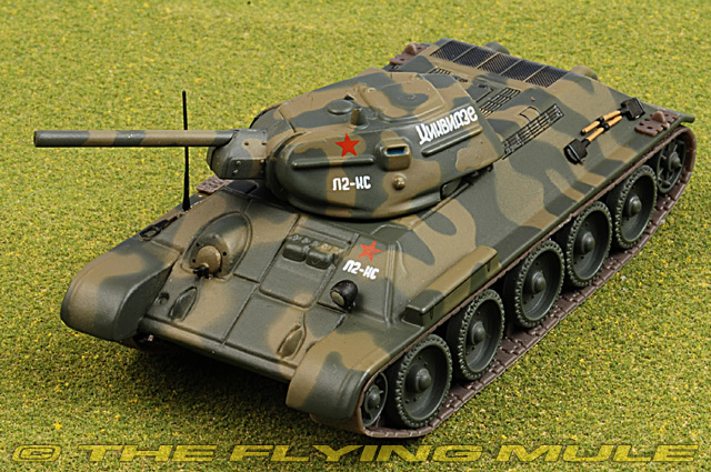 The T-34 was a Soviet medium tank which had a profound and lasting effect on the field of tank design. Although its armour and armament were surpassed later in the war, it has been often credited as the most effective, efficient, and influential tank design of World War II. At its introduction, the T-34 possessed an unprecedented combination of firepower, mobility, protection, and ruggedness. Its 76.2 mm (3 in) high-velocity tank gun provided a substantial increase in firepower over any of the T-34's contemporaries; its heavy sloped armour was difficult to penetrate by most contemporary anti-tank weapons. First encountered in 1941, German tank general von Kleist called it "the finest tank in the world" and Heinz Guderian confirmed the T-34's "vast superiority" over German armour and found it "very worrying." Designed to replace the Soviet BT-5, BT-7 and T-26 infantry tanks, the T-34 was produced between 1940 and 1958. The T-34 is often regarded as one of the most successful and most influential tanks of the era. It was WWII's most highly produced tank and history's second most highly produced tank. The T-34 had a powerful engine, wide tracks and heavy armor. It was continuously refined, and by 1944 had gained a more powerful 85mm gun and a superior three-man turret design. The success of the T-34 can be measured in part by its longevity-by 1996, T-34s were still serving in 27 nations around the world. © Copyright 2003-2026 The Flying Mule, Inc. The Altaya "Armored Fighting Vehicles" range presents affordable, ready made diecast models of military vehicles in 1:72 scale. To help keep the price down, these items arrive in low-cost, discardable blister type packaging. Altaya "Armored Fighting Vehicles" diecast vehicles feature: - Diecast metal and plastic construction.