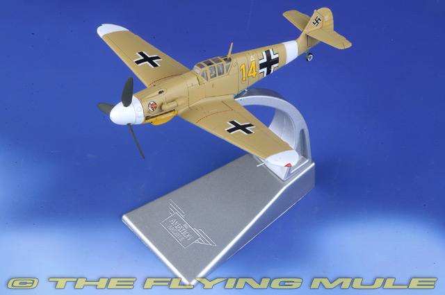 Designed to meet a Luftwaffe need for a single-seat fighter/interceptor, the Messerschmitt Bf 109 was first flown on May 28th, 1935. Its all-metal construction, closed canopy and retractable gear made the Bf 109 one of the first true modern fighters of WWII. This versatile aircraft served in many roles and was the most produced aircraft of the war and the backbone of the Luftwaffe, and was flown by Germany's top three aces, who claimed a total of 928 victories between them. Armed with two cannons and two machine guns, the Bf 109's design underwent constant revisions, which allowed it to remain competitive until the end of the war. © Copyright 2003-2025 The Flying Mule, Inc.
