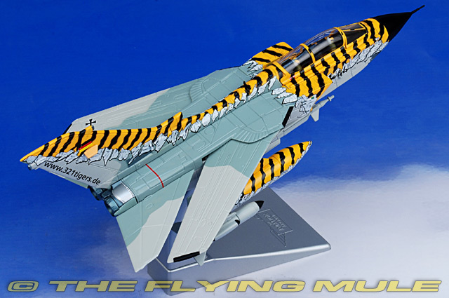 The Tornado incorporates variable-geometry wings able to sweep through 43 degrees which, in conjunction with two Turbo Union advanced turbofan engines and highly sophisticated avionics, make it possible for the Tornado to achieve all-weather penetration of enemy airspace. Each year, squadrons within NATO hold a "Tiger Meet" with those squadrons whose unit insignia features a tiger. Many squadrons paint their participating aircraft in a special tiger-scheme and '46+44' was the representative aircraft from JBG-32, German Air Force in 2001.