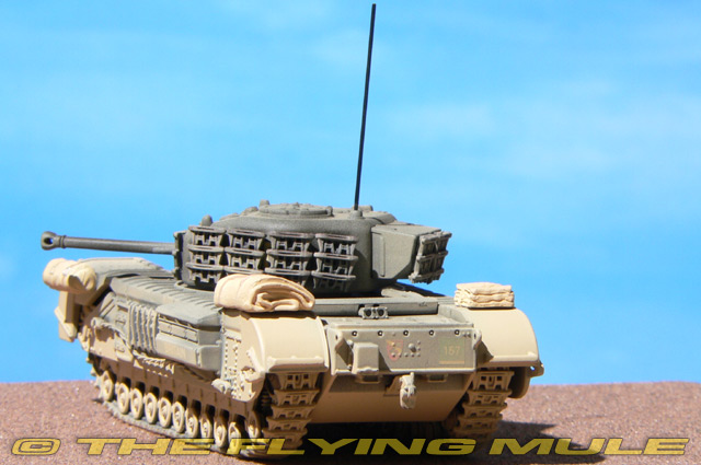 The 34 Tank Brigade was formed in 1941 and trained in the South East of England, first as an independent brigade, then as part of 1 Division and the 43rd Wessex Division until nine months before D-Day, June 6th 1944, when it became an independent tank brigade once more. Designed as a heavy infantry tank to replace the Matilda II, the Churchill prototype was completed in June 1940 and the type entered production in June 1941. The design was largely influenced by the British Army's experiences with trench warfare during WWI. As a result, the Churchill was a large, heavy (38 tons), and relatively slow machine, built to traverse heavily cratered landscapes to take on lightly armored infantry. The small turret significantly restricted the size of armament that could be fitted to the Churchill but it's heavy armor made it much more resilient than contemporary allied tanks. © Copyright 2003-2025 The Flying Mule, Inc. The Corgi "Military Vehicles" range presents higly-detailed, ready-made diecast models of military vehicles. Corgi diecast tanks require no glueing or painting. Each model is an instant display piece or diorama centerpiece straight from the box. Made from diecast metal, die cast tanks from Corgi are 100% true to scale... these don't look like model tanks, they look like tanks!. Color, camouflage and unit markings are carefully researched for Maximum authenticity, marking the difference between and authentic scale model tank and a "toy" tank. Corgi "Military Vehicles" diecast vehicles feature: - Diecast metal construction with some plastic components.