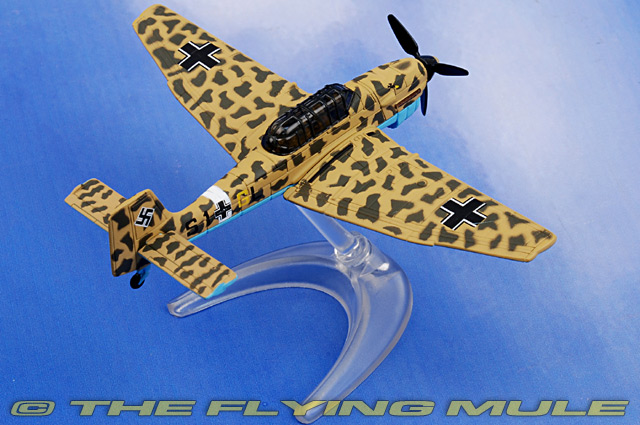 Designed to function as a close support aircraft, the Ju 87 was first flown on September 17th, 1935. The Ju 87 had an innovative design that included automatic dive brakes under each wing-a feature that protected against the consequences of pilot blackout by ensuring recovery from an attack dive. Crewed by a pilot and rear gunner, the Ju 87 had twin 37mm cannons and a bomb that swung away from the propeller on an elongated U-shaped crutch. Its inverted gull wings improved pilot-to-ground visibility, gave the undercarriage a shorter height and made the Ju 87 instantly recognizable to its enemies. © Copyright 2003-2026 The Flying Mule, Inc.