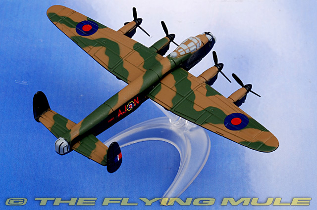 Surely one of the most amazing attacks of the World War II was 'Operation Chastise', the attack by Lancasters of 617 Sqn against the German Ruhr valley dams using the famous bouncing bomb. Following the successful attack on the Mohne Dam, Guy Gibson led 5 Lancasters to the Eder. This dam was situated in extremely difficult terrain and as the aircraft struggled to line up on their target, one was destroyed as it was caught in the blast of an exploding bomb. Pilot Officer Les Knight was flying 'N for Nan' and he was charged with the final bombing run. The two previous mines had failed to breach the dam, but must have weakened the structure. Knight lined up his Lancaster and brought to bear all his training into this one final effort. His aim was true and at 2am on 17th May 1943 the Eder Dam was breached! The aircraft were adapted Avro Lancaster Mk IIIs, known as B Mark III Special. To reduce weight, much of the armour was removed, as was the mid-upper turret. The substantial bomb and its unusual shape meant that the bomb doors were removed and the bomb itself hung, in part, below the body of the aircraft. It was mounted in two crutches and before dropping, it was spun up to speed by an auxiliary motor. Bombing from 60 ft (18 m) at 240 mph (390 km/h), at a very precise distance from the target, required expert crews, intensive night and low-altitude flight training, and the solutions to two technical problems. The first was to know when the aircraft was the correct distance from the target. The two key dams at Möhne and Eder had a tower at each end. A special aiming device (a device with two prongs making the same angle as the two towers at the correct distance from the dam) showed when to release the bomb. The second problem was to measure the aircraft's altitude (the usual barometric altimeters lacked sufficient accuracy). Two spotlights were mounted, one under the nose and another under the fuselage, such that at the correct height their light beams would converge on the surface of the water. Designed to meet a specification for a new generation of "worldwide use" medium bombers, the Avro Lancaster was first flown on January 8, 1941. The design of the Lancaster evolved from an unsuccessful two-engine aircraft called the Manchester. The heavier Lancaster had four engines and an extensive bomb bay, with later versions capable of carrying 22,000 lb bombs. Used primarily as a night bomber, the Lancaster was a versatile aircraft that became most famous for its role in the 1943 "Dam Buster" raids on Germany's Ruhr Valley dams. Between 1942 and 1945, Lancasters flew 156,000 sorties, dropping 608,612 tons of bombs on enemy targets. © Copyright 2003-2025 The Flying Mule, Inc. The Corgi "Showcase Collection" range presents affordable, ready-made diecast models of military and civilian aircraft. Corgi "Showcase Collection" diecast airplanes feature: - Diecast metal construction with some plastic components.